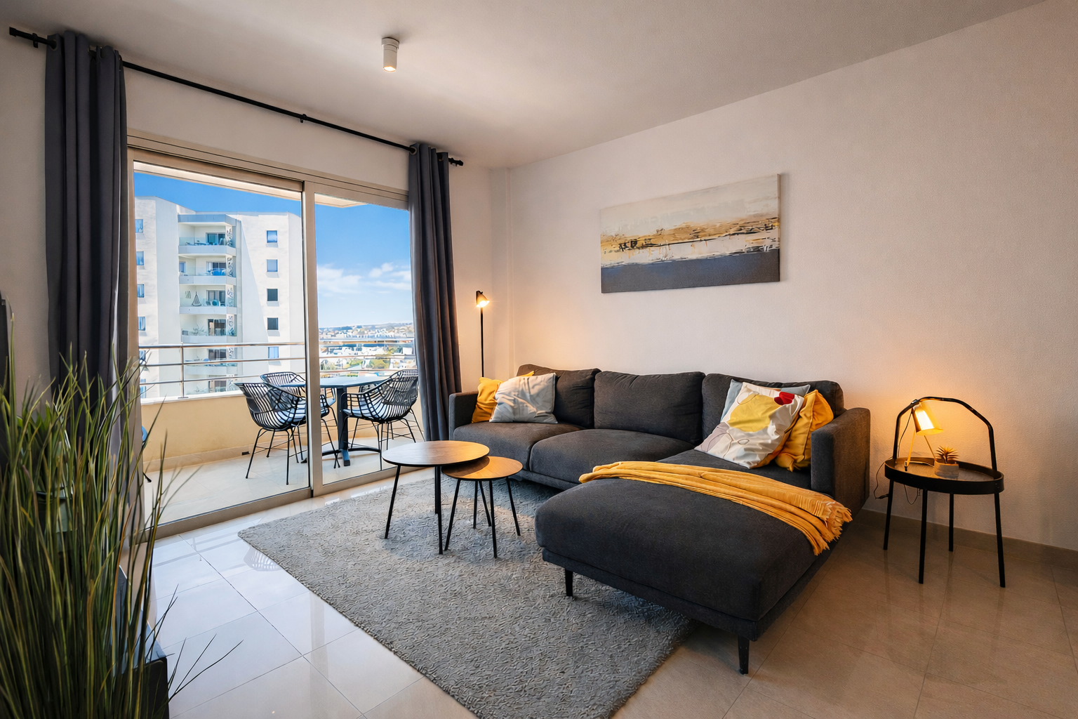 Es verfügt über zwei extra große Betten mit komfortablen Matratzen, Einbauschränke und ein vollständiges Badezimmer mit Badewanne und Bidet. Das offene Wohnzimmer umfasst einen Loungebereich mit Sofa und TV, direkten Zugang zur Terrasse und einen gemütlichen Esstisch für 4 Personen.